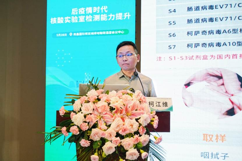 5月29日上午,達(dá)安基因副總經(jīng)理蔣析文做了《當(dāng)前病原微生物體外診斷發(fā)展趨勢(shì)》為題的報(bào)告分享,從企業(yè)視角分享了病原微生物體外診斷的現(xiàn)狀、達(dá)安基因病原微生物檢測(cè)整體解決方案及未來(lái)的發(fā)展方向。