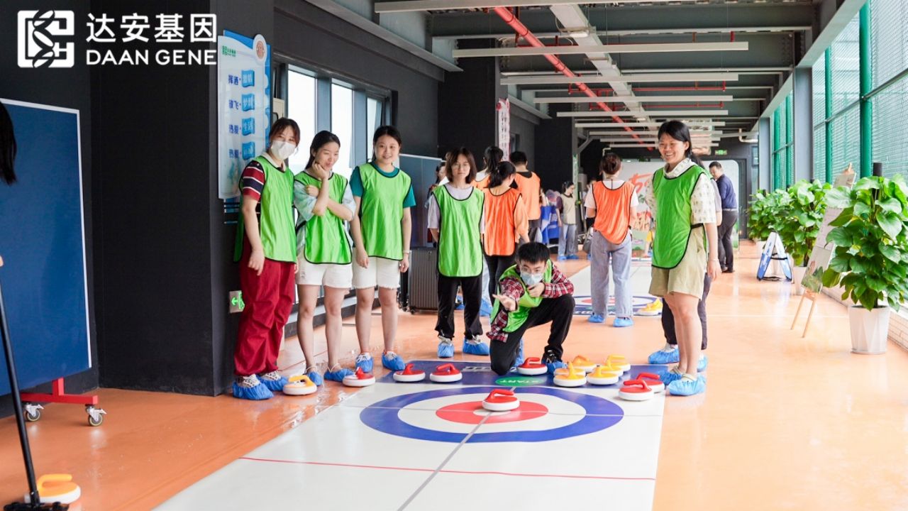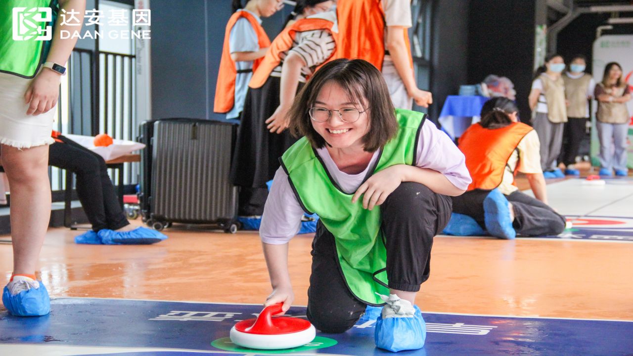 緊接著進(jìn)行了“旱地冰壺”游戲的組隊(duì)競(jìng)技。冰壺又被譽(yù)為“冰上的象棋”,它比拼的不僅是力量、技巧,也需要智慧和謀略。比賽中,各隊(duì)隊(duì)長(zhǎng)冷靜布局指揮,隊(duì)員們?nèi)褙炞?,現(xiàn)場(chǎng)精彩對(duì)決不斷,大家充分享受游戲帶來(lái)的激情與歡樂(lè),