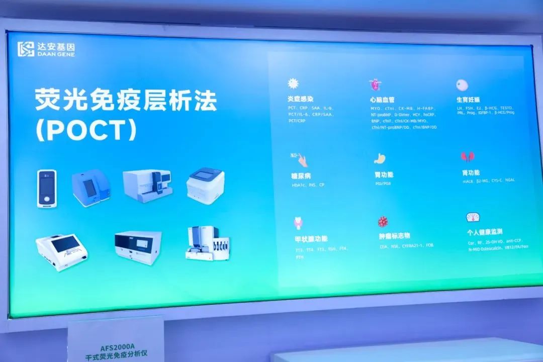 在POCT領(lǐng)域,展出了多款自主研發(fā)的熒光免疫分析儀,針對(duì)不同的檢測需求,配套9個(gè)大類53個(gè)項(xiàng)目的熒光免疫檢測試劑,涵蓋了感染標(biāo)志物、心腦血管標(biāo)志物、腫瘤標(biāo)志物、甲狀腺功能、腎臟功能、胃功能、糖尿病、生育妊娠檢查、個(gè)人健康檢測等應(yīng)用領(lǐng)域,積極助力疾病的早期篩查、風(fēng)險(xiǎn)預(yù)測及縮短治療決策時(shí)間。