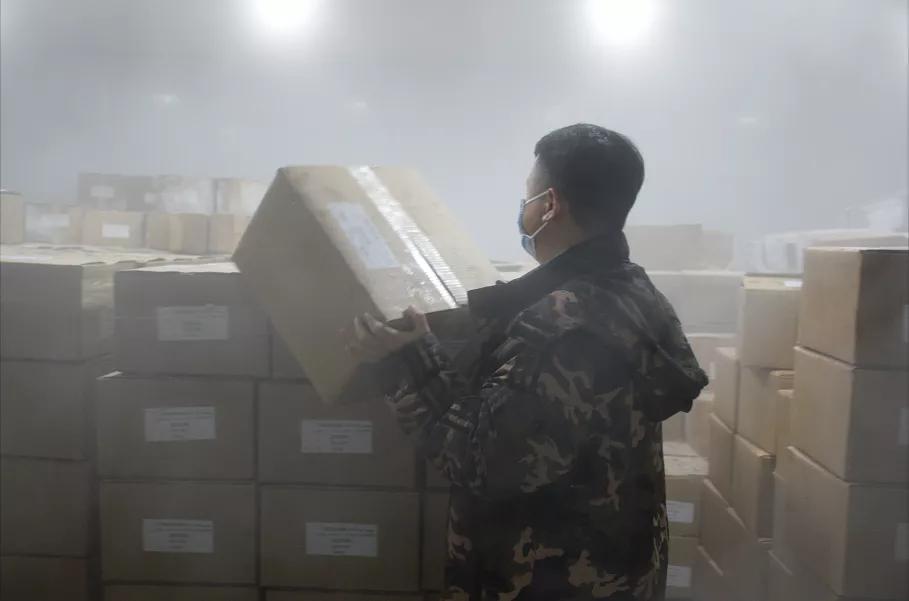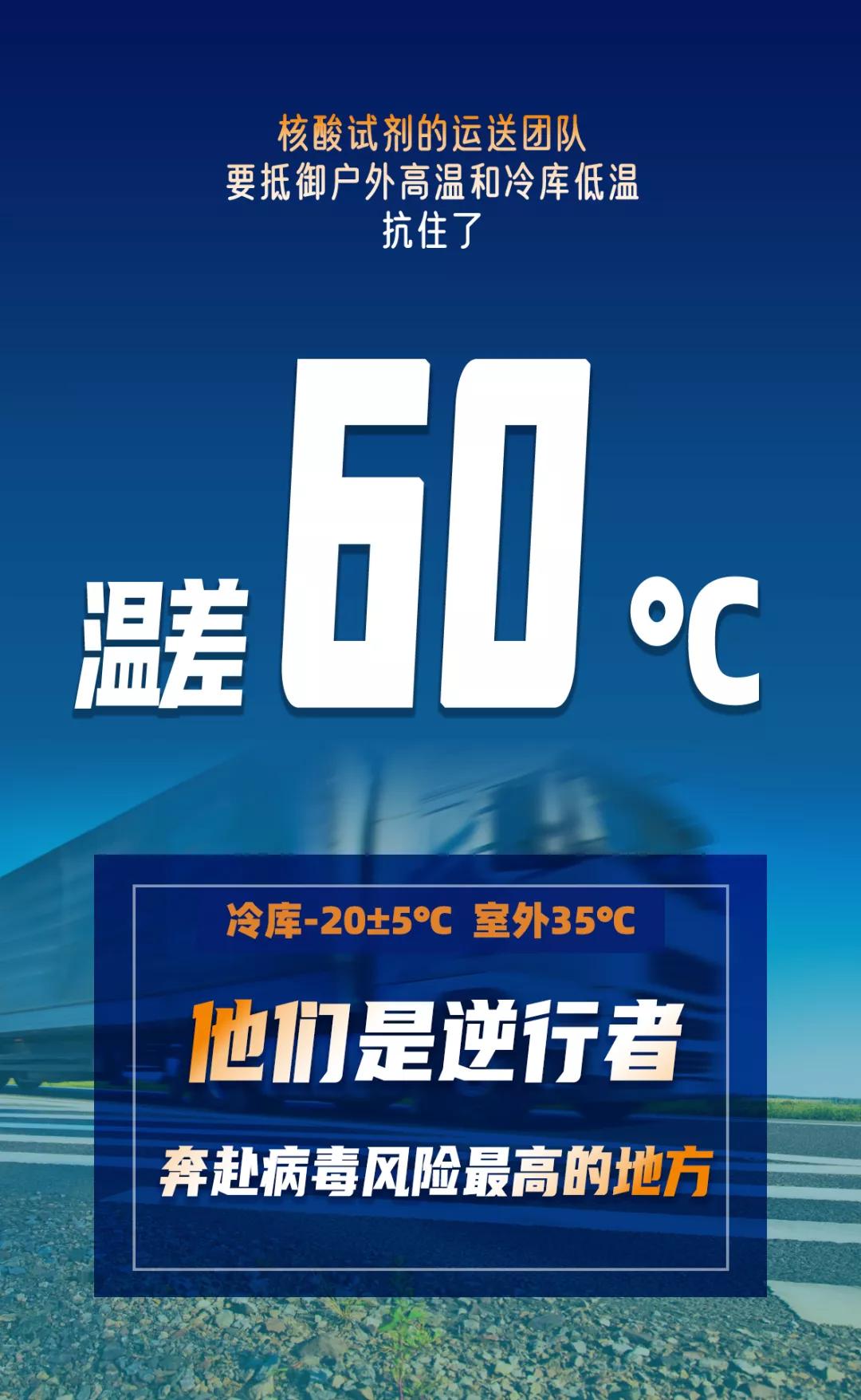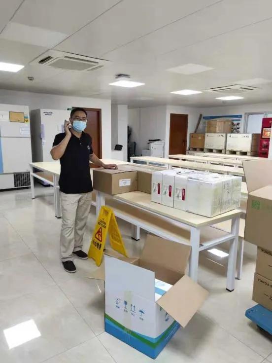 出來后,從-25℃,又回到30℃的高溫中,爭(zhēng)分奪秒,通過保溫箱和冷藏車,將試劑配送到檢測(cè)點(diǎn)。每一天,在近60℃的溫差之間,如此反復(fù)。