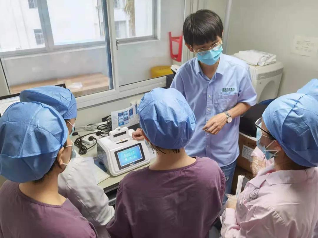 技術(shù)人員正指導(dǎo)醫(yī)務(wù)人員使用儀器。