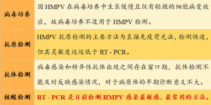 HMPV感染診斷技術(shù)包括病毒培養(yǎng)、核酸檢測、抗原檢測和血清學(xué)抗體檢測。
