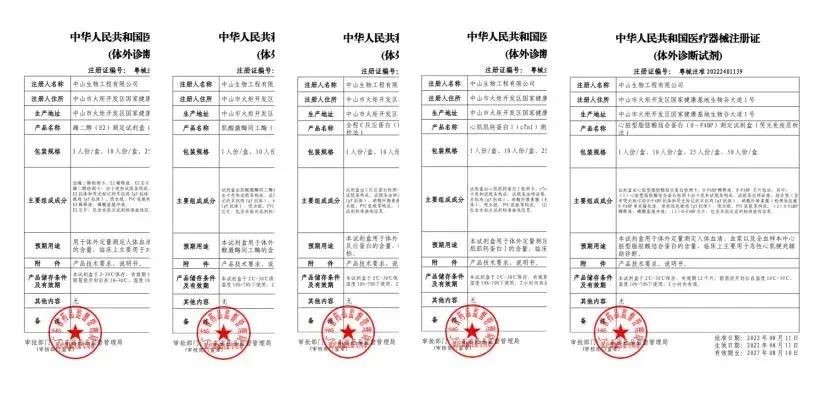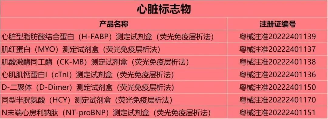 本次獲證的心腦血管疾病檢測試劑主要包括:肌紅蛋白(MYO)測定試劑盒(熒光免疫層析法) 、肌酸激酶同工酶(CK-MB)測定試劑盒(熒光免疫層析法)、心肌肌鈣蛋白I(cTnI)測定試劑盒(熒光免疫層析法)、D-二聚體(D-Dimer)測定試劑盒(熒光免疫層析法)、同型半胱氨酸(HCY)測定試劑盒(熒光免疫層析法) 、N末端心房利鈉肽(NT-proBNP)測定試劑盒(熒光免疫層析法)等產(chǎn)品。