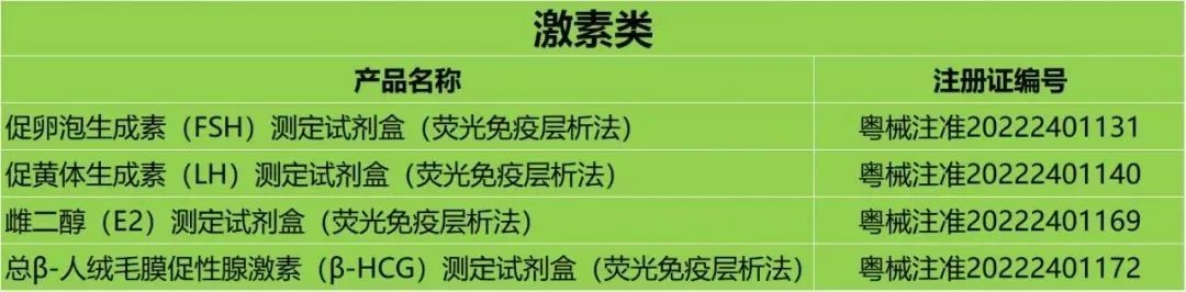 本次獲證的妊娠類疾病檢測試劑主要是:促卵泡生成素(FSH)測定試劑盒(熒光免疫層析法)、促黃體生成素(LH)測定試劑盒(熒光免疫層析法)、雌二醇(E2)測定試劑盒(熒光免疫層析法);優(yōu)生優(yōu)育類檢測試劑為總β-人絨毛膜促性腺激素(β-HCG)測定試劑盒(熒光免疫層析法)。