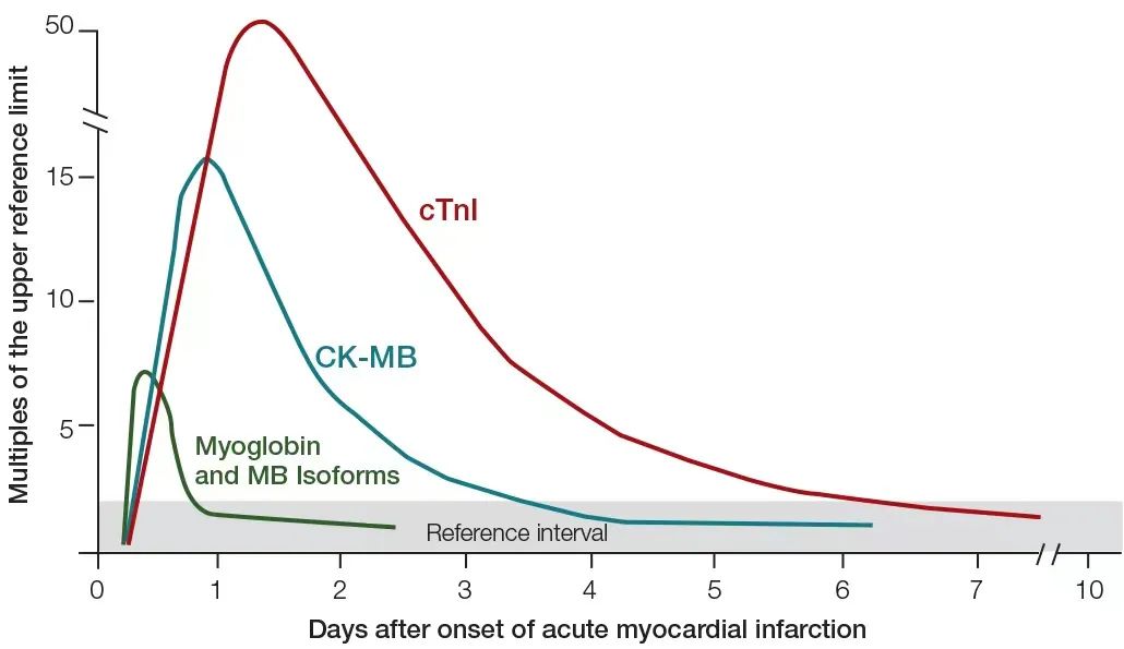 肌鈣蛋白(cTnI)是心肌肌肉收縮的調(diào)節(jié)蛋白。肌紅蛋白(Myo)是一種主要存在于橫紋肌中含亞鐵血紅素的小分子蛋白質(zhì),負(fù)責(zé)心肌細(xì)胞的氧氣貯存與分配。肌酸激酶同工酶(CK-MB)別名為血清肌酸激酶同工酶是一種酶類成分。這些心臟標(biāo)志物檢測已經(jīng)成為臨床醫(yī)生常用的診斷心肌梗死的依據(jù)。