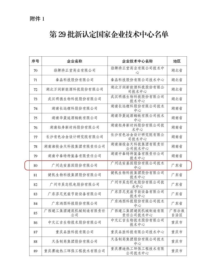 喜報丨達安基因榮獲國家企業(yè)技術(shù)中心認定