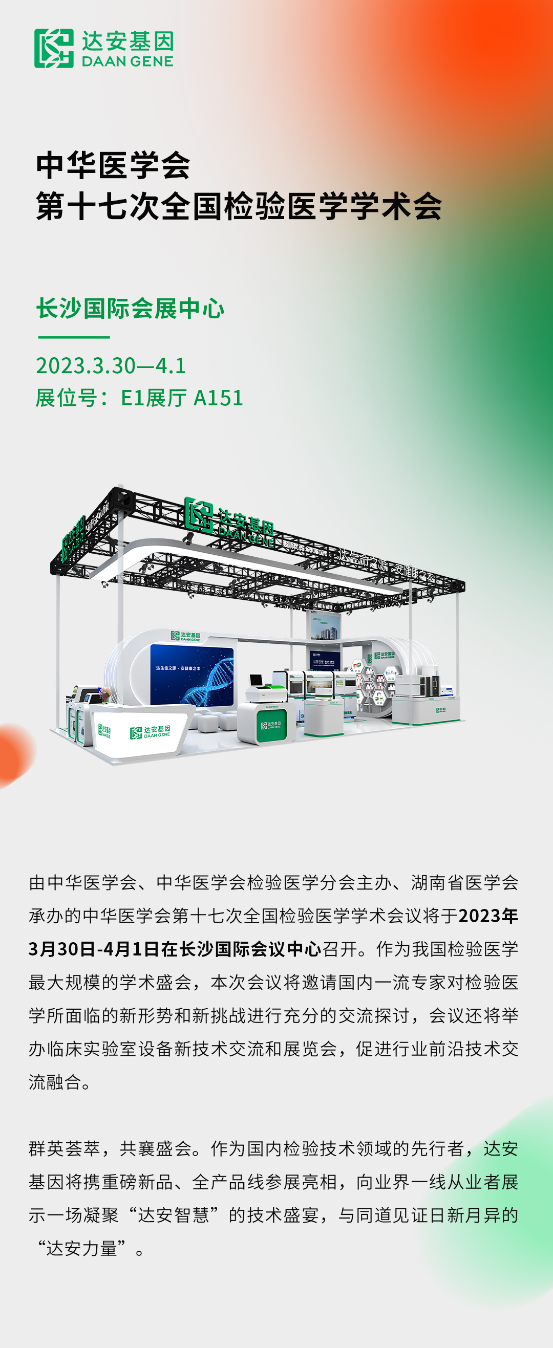 新品首展,蓄勢(shì)待發(fā) | 達(dá)安基因邀您共襄中華醫(yī)學(xué)會(huì)第十七次全國(guó)檢驗(yàn)醫(yī)學(xué)學(xué)術(shù)會(huì)議