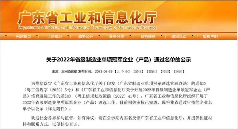 “省級(jí)制造業(yè)單項(xiàng)冠軍示范企業(yè)”